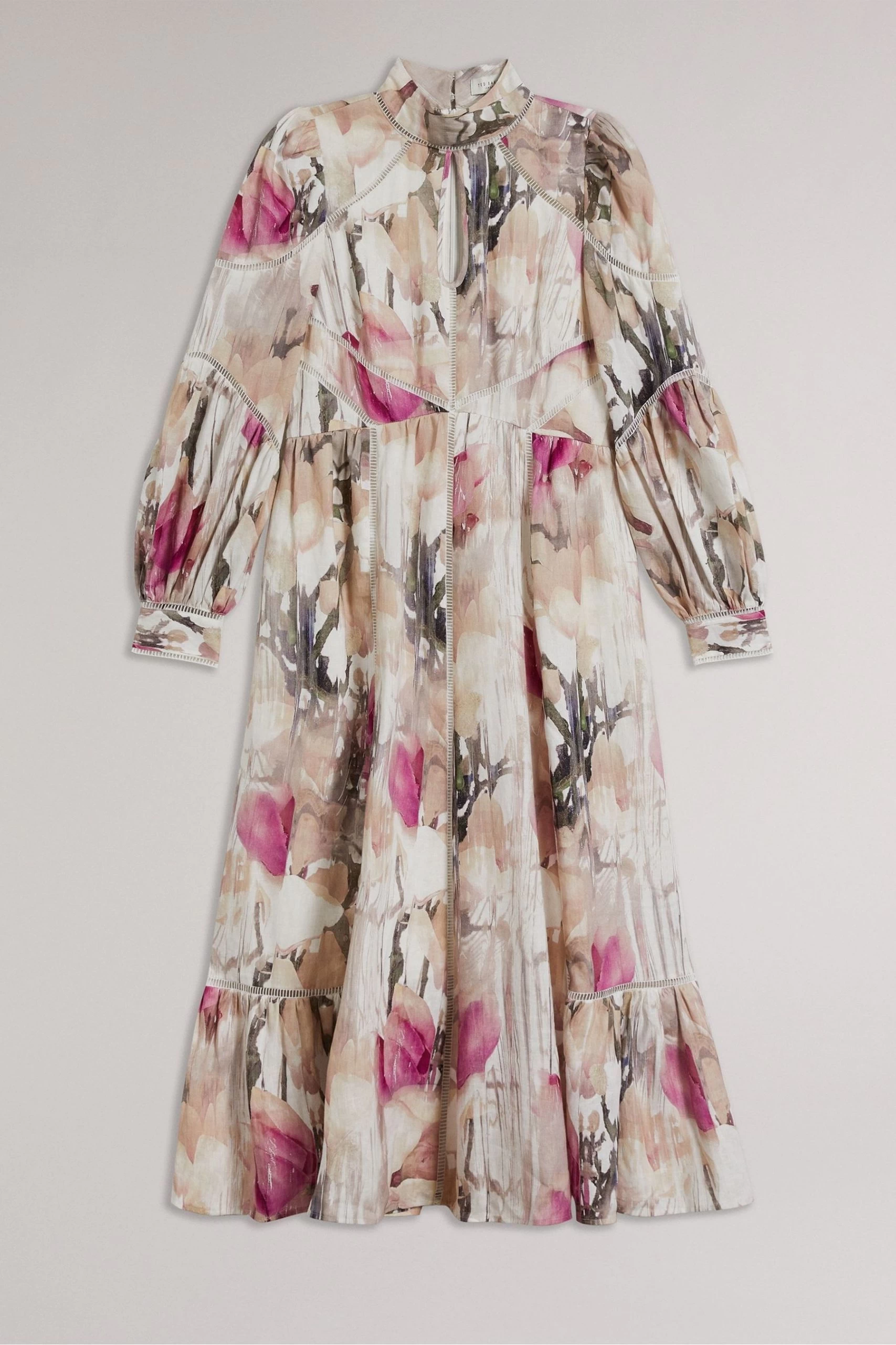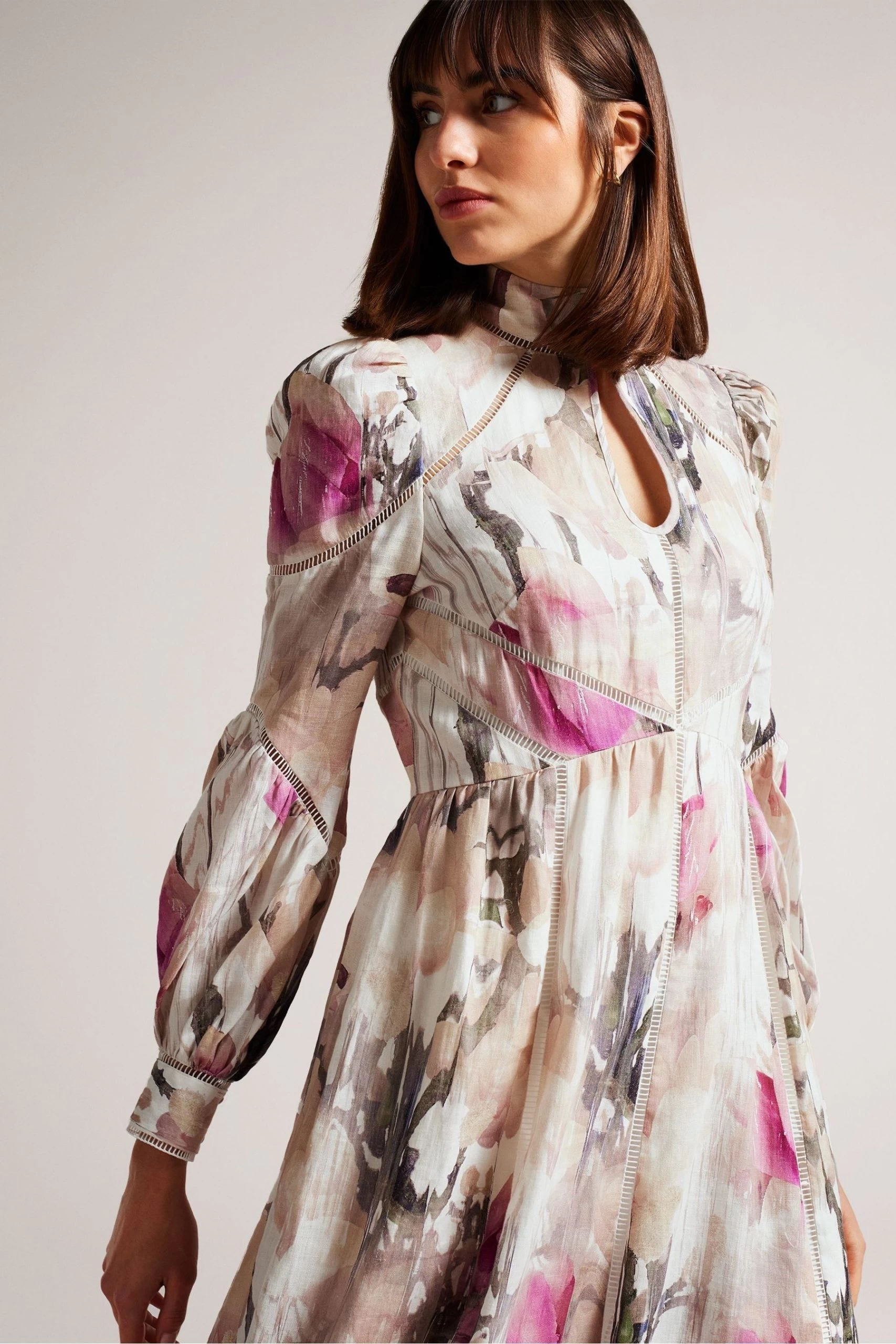 A high neck, ladder lace inserts and bold cut-out FREISYA has it all. A sun dress made of the softest linen, this lightweight midi has been crafted with a painted floral print that’s timelessly glam.