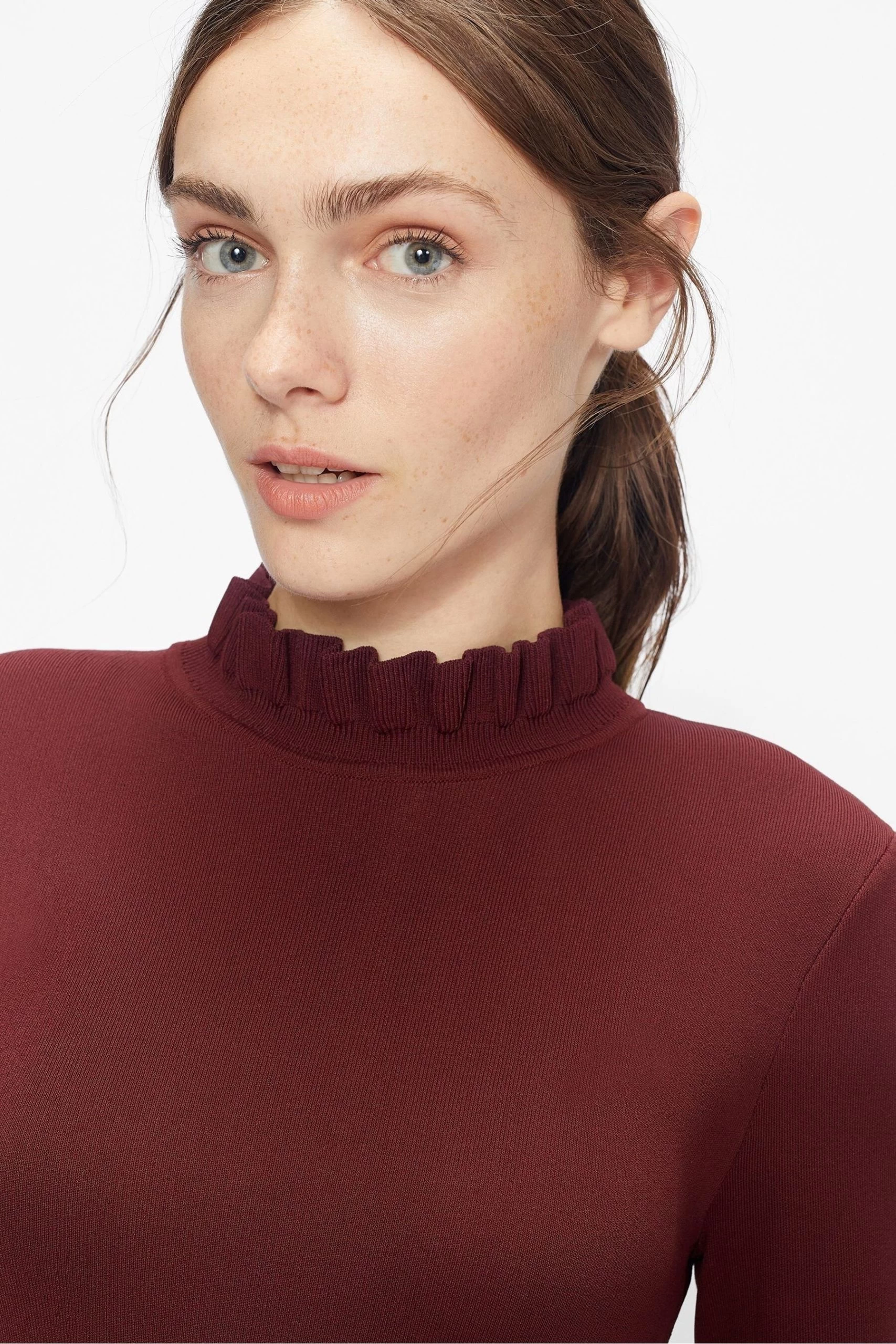 Add some vintage-inspired glamour in the ZADI dress. Featuring a fitted knitted top with ruffle collar and cuffs that gives way to a 1950s-esque full circle skirt. Pair with some classic heels for truly elegant evening look worthy of any starlet.